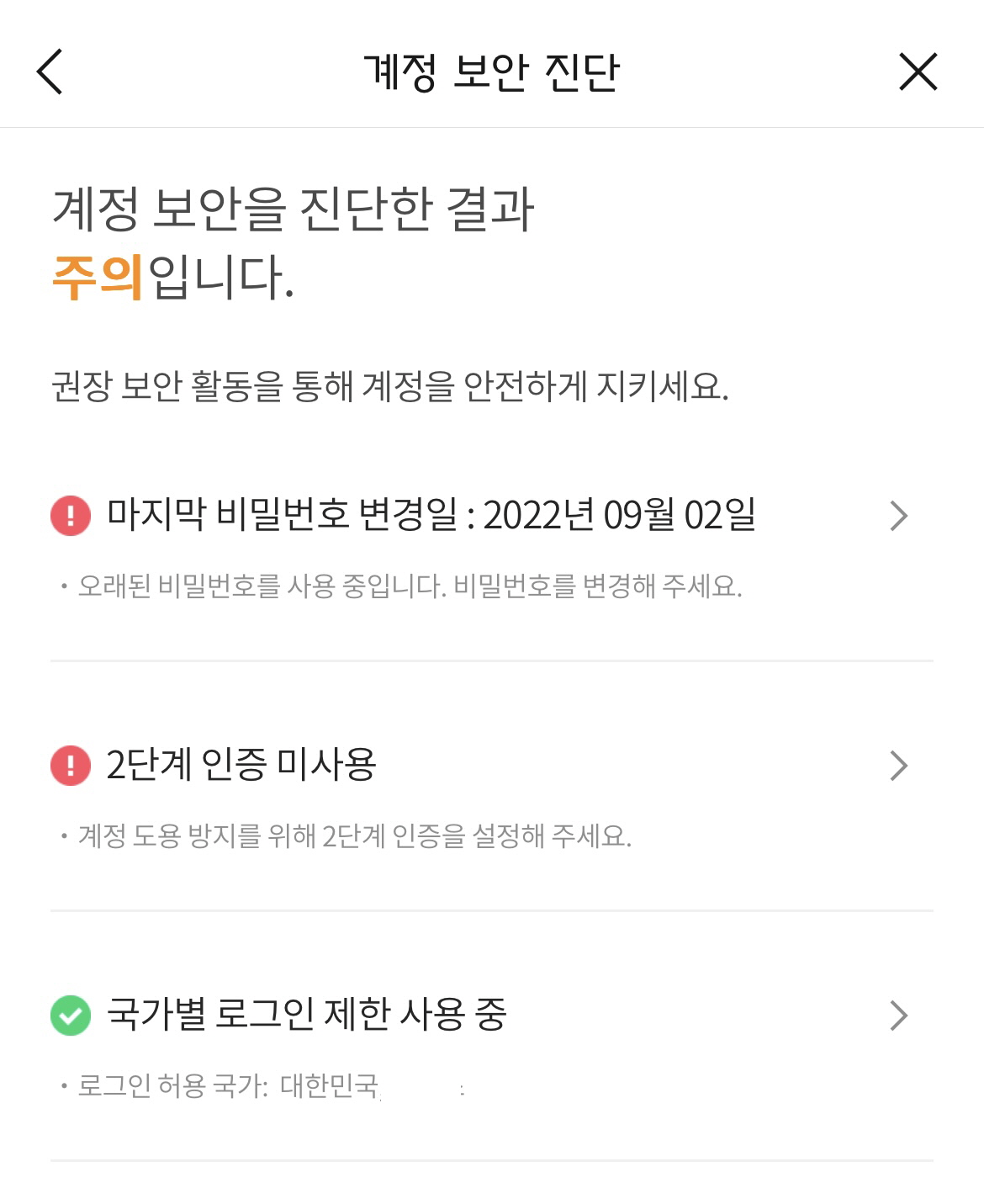 - 보안 진단 결과 확인 (위험 항목이 있다면 즉시 조치)