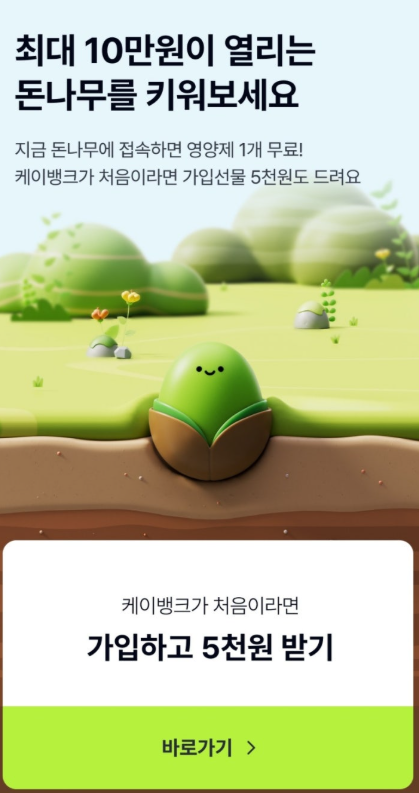 지금 바로 케이뱅크 앱 설치하고 당신만의 돈나무를 키워보세요!