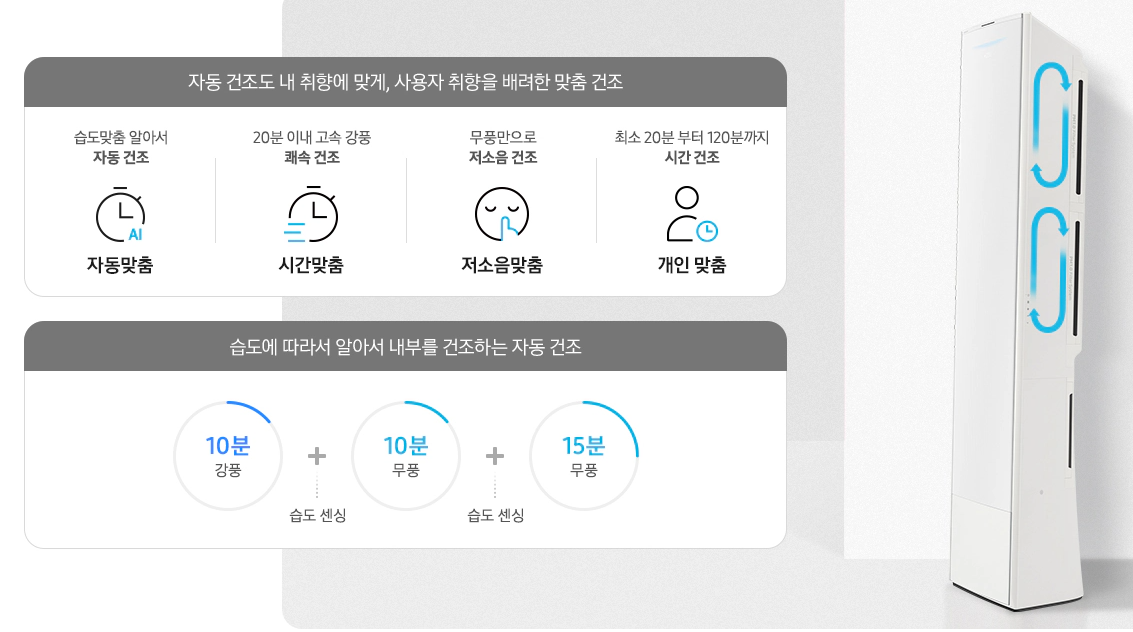 - 휘센 오브제컬렉션 타워I: AI 기능을 통해 사용자의 생활 패턴을 학습하여 최적의 냉방 환경을 제공합니다. 에너지 소비효율 1등급을 획득하였으며, 디자인과 성능을 모두 갖춘 프리미엄 모델입니다.(헬로티)