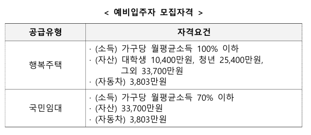 LH, 올해 첫 행복주택 예비입주자 모집, 자격