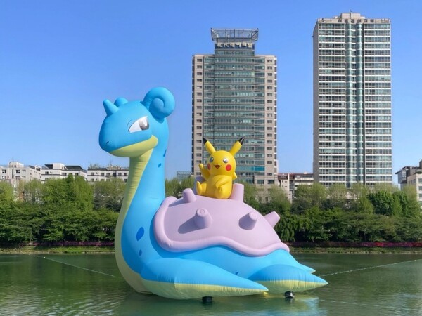 석촌호수 동호에는 높이 16m, 너비 18m의 대형 라프라스와 피카츄 벌룬이 떠 있습니다. 작년과 비슷해 보이지만, 이번에는 메타몽이 변신한 포켓몬이라는 특별한 설정이 있답니다! 오후 6시부터 10시까지는 야간조명이 켜져 밤에도 아름다운 모습을 감상할 수 있어요.