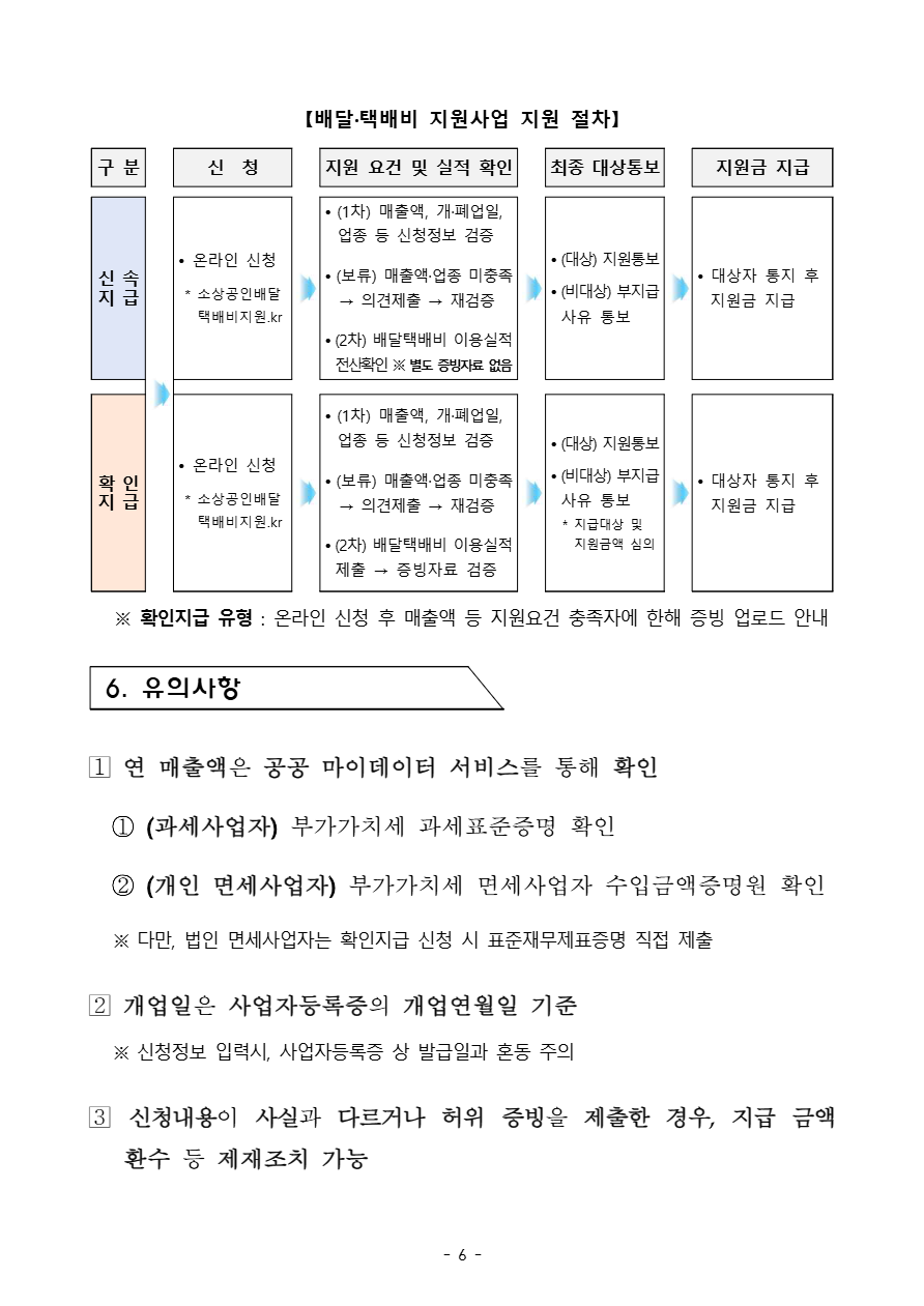 소상공인 배달·택배비 지원사업 확인지급 접수 시작