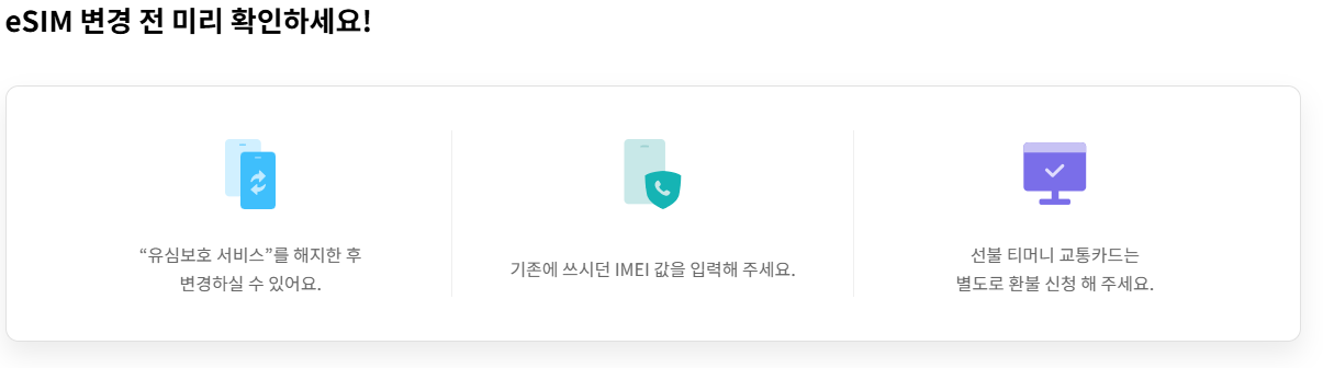 eSIM을 사용 중인 고객도 이번 SK텔레콤 무상교체 대상에 포함됩니다. 다만 다음 사항에 주의해야 합니다: